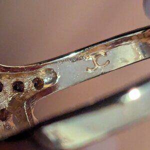 Excellent condition statement ring. Size is in-between a 9.5 and 10, see ring on ring sizer. Vintage Joseph Cleary cocktail ring. gold tone bypass band with marquise cut garnet center stone and small faux diamond rhinestones. signed JC
