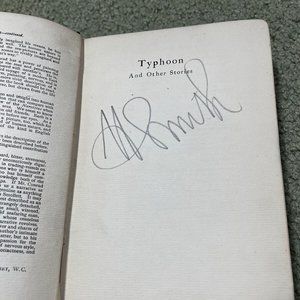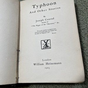 You are buying a Joseph Conrad / TYPHOON AND OTHER STORIES First Edition 1903 Book W/ Ads (32 pages) and a Gold gilt life preserver on cover. Some binding reverse issue as shown. One page signed and one has an old newspaper clipping as shown. This rare book will go to the high bidder as I have no buy it now. Stories are as shown in last picture.