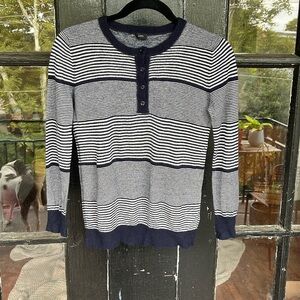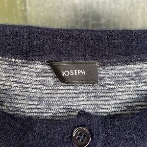 Joseph. Size small. 100% cashmere making it super soft! Dark blue striped. Quarter button up.