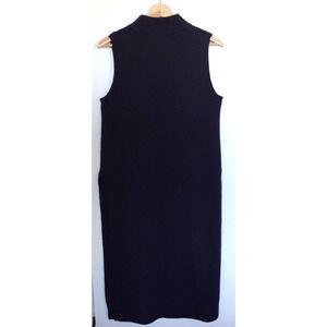 Item: Quiet Luxury sleeveless sweater dress deeply vented tunic- works as a layering piece as shown in stock photos - does not include underlayer slip as shown in stock photo and color of this piece is the navy blue