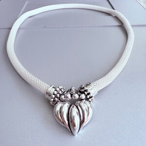 Joseph Esposito Fluted Puffy Heart 6mm Mesh Collar Somerset Chain Sterling Silver Necklace