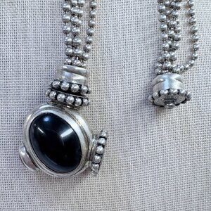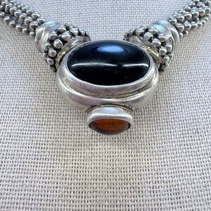 Joseph Esposito Sterling Silver 925 Black Onyx Amber Beaded Necklace