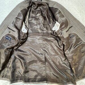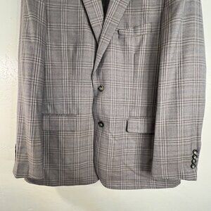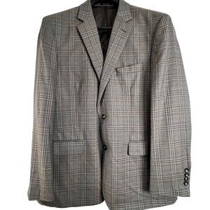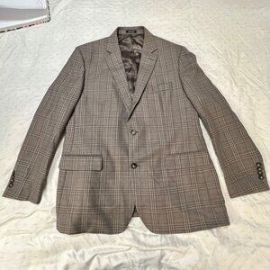 Joseph & Feiss Gold Mens Plaid Blazer Classic Fit 44R Wool Blend Gray Career
