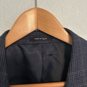 Joseph & Feiss Gold Wool 2 Button Blazer Navy Blue Plaid Pattern XL 44 R