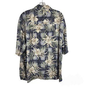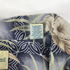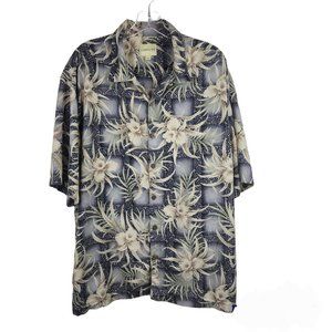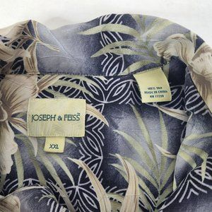 Joseph & Feiss Mens Hawaiian Shirt Button Up Blue Green Tan XXL Silk Floral