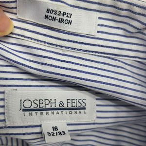 Joseph & Feiss Mens White & Blue Striped Non-Iron Button Up - 16 32/33
