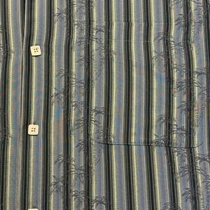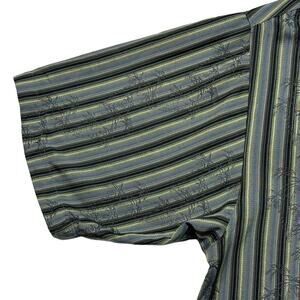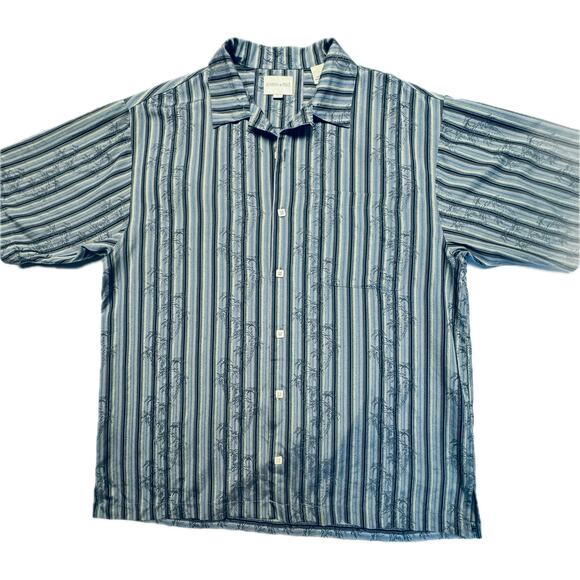 Joseph & Feiss Palm Tree Silk Button-Up Short Sleeve Men L Blue Black Striped