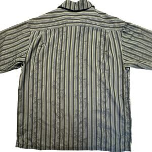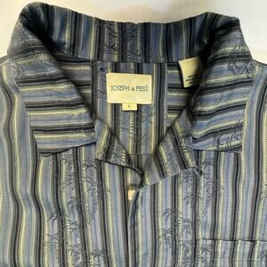 Joseph & Feiss Button-Up 100% Silk Men's Size L Embossed Palm Trees Striped