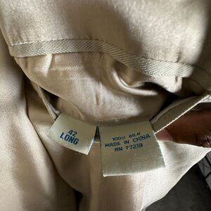 silk blazer sport coat men’s 42L, tan, classic, formal, business, prep, good condition / 100% silk