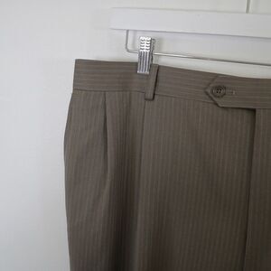 Joseph & Feiss Wool Beige Green Herringbone Striped 2 Piece Suit 42R 39/28 2 Button Pleated Cuffed Lined Partially Tagged 46R / 46 Waist Has Been Tailored From Original Size