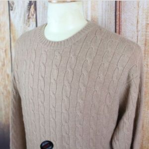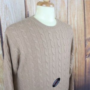 Joseph & Lyman Men's 100% Cashmere Sweater Large Tan, Beige Cable Knit Crewneck Pullover