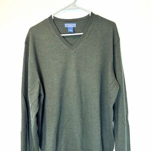 LIKE NEW/Joseph Lyman Mens XL Green Merino Wool V-Neck Sweater