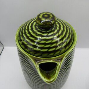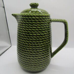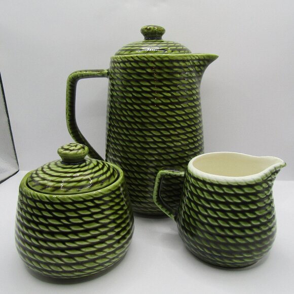 Vintage 1960's, Green Coiled basket pattern, Includes Tea pot with Lid, Creamer and Sugar with Lid, In Good Vintage Condition, No Chips or Cracks
