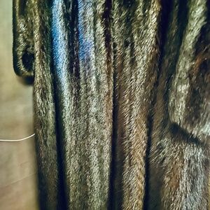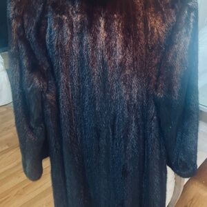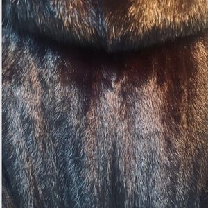 Sleek, luxurious fur in perfect condition, with standing collar and slit side pickets.
