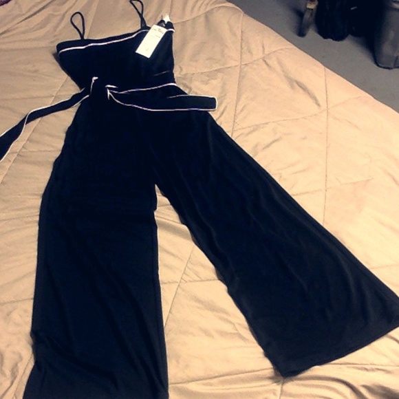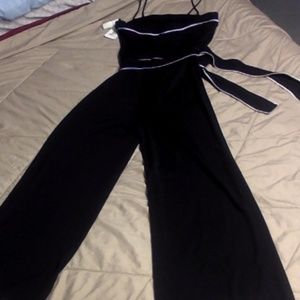 Very Cute black Joseph Ribkoff jumpsuit with belt that ties around waste 70% rayon 30% polyester. Size 12 never worn new with tags.
