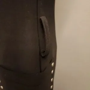 round metal type studs around pockets and top area