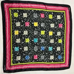 Joseph Ribkoff Silk Scarf Geometric Colorblock Black Pink Square OS
