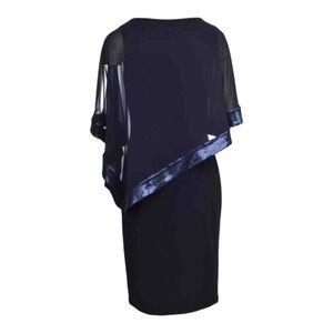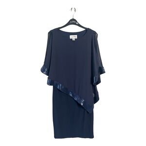 Joseph Ribkoff 730236 Midnight Navy Chiffon Overlay Sequin Trim Dress - 8 NWOT