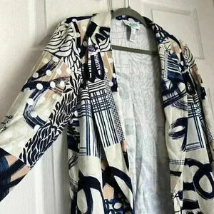 Joseph Ribkoff Abstract Woven Blazer Style Beige Blue Coastal Sz 8
