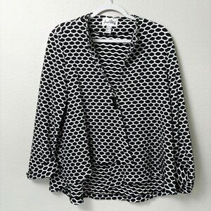 Joseph Ribkoff Asymmetrical Jacket Overshirt Size 12 Black White Geometric Print