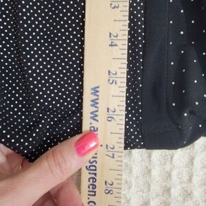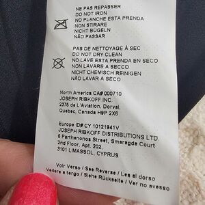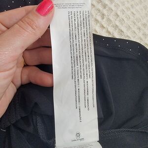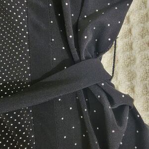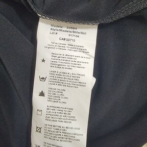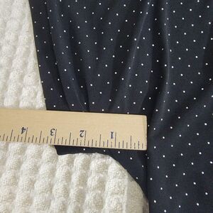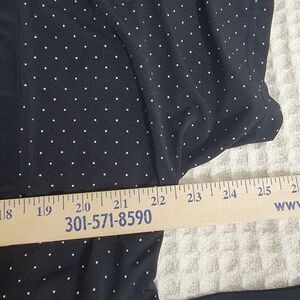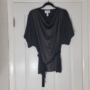 94% polyester 6% elastane. Made in Canada. Raised silver color dots on the fabric. Cowl Neck. No stains holes or defects excellent condition.