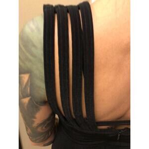 Super cute and sexy little black dress with rhinestone details on the straps. Has a sweetheart neckline and mini length. Very flattering, perfect for a night out or an event like a wedding. The size tag is an 8 but I think it fits more like 6.