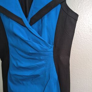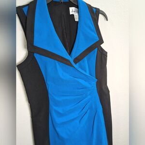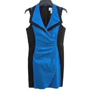Joseph Ribkoff Black & Cobalt Blue faux wrap ruched stretch collar mini dress 10