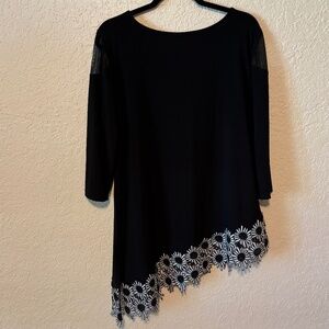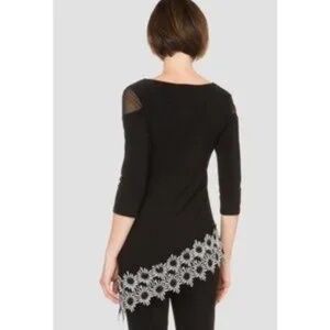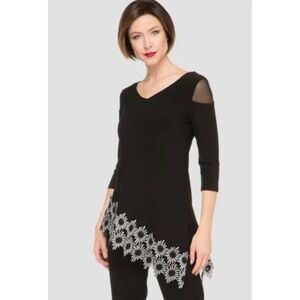 Joseph Ribkoff Black Daisy Lace Trim Asymmetrical Tunic Top women's Size 16
