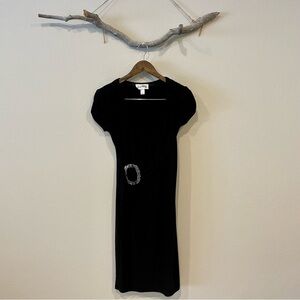 Joseph Ribkoff Black Faux Wrap Buckle V Neck Dress