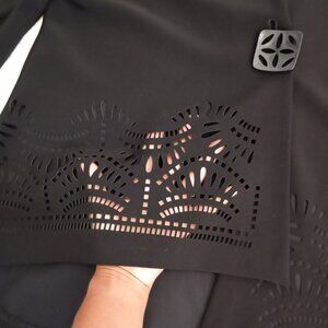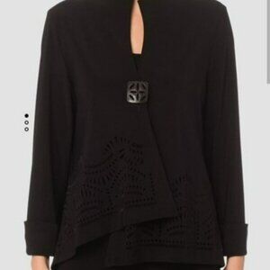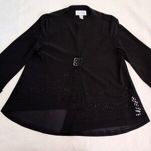 Joseph Ribkoff Black Laser-Cut Asymmetrical Jacket Button Detail Womens Size 6