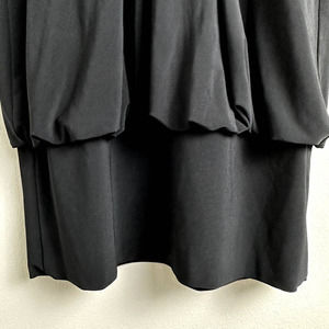 This Joseph Ribkoff in SIZE 4 just Beautiful!! Short Black Dress with V-Neck, Sash on the back, Cinched and stretchy at Bottom. Polyester, spandex blend with 100% polyester lining. Style 19616. Pre-owned, but good condition.