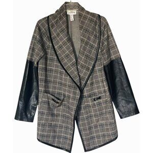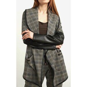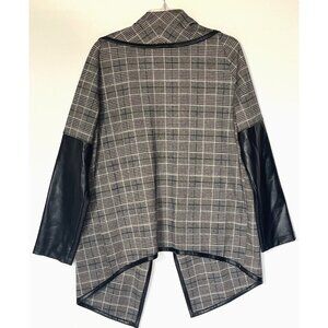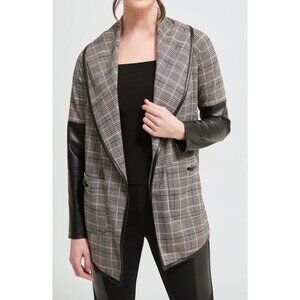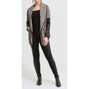 Joseph Ribkoff Black Multi Plaid Faux Leather Sleeve Open Cardigan CoverUp