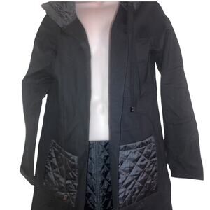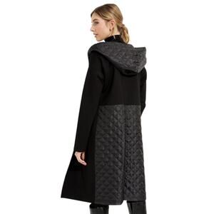 Get ready for cooler weather wearing this quilted Joseph Ribkoff cover-up, the ideal piece to transition out of summer styles and into fall staples. With its lengthy fit, cozy hood, and open front, you'll find this garment easy-to-wear, topping off many of your outfits with grace and simplicity. Side pockets. No zipper. Made in Canada, tariff free.