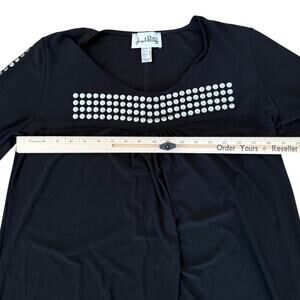 Stylish black tunic or mini dress by Joseph Ribkoff featuring silver stud accents in the front and down each sleeve. Perfect for a chic look. Oversize fit so could fit a 10 also.