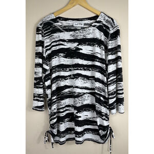 Joseph Ribkoff Black White Top Sz 18 XL Rouched Sides Liquid Knit