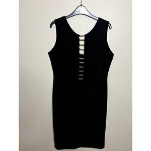 Joseph Ribkoff Black sheath dress gold back zipper & gold bar details sz 12