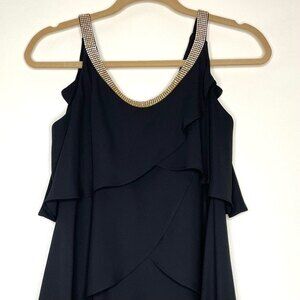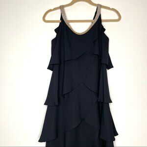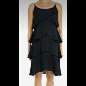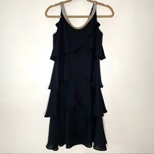 Joseph Ribkoff Chiffon Dress Embellished Jeweled Tiered Cocktail Black Size 4