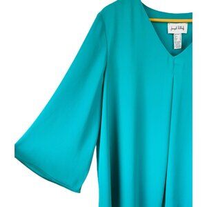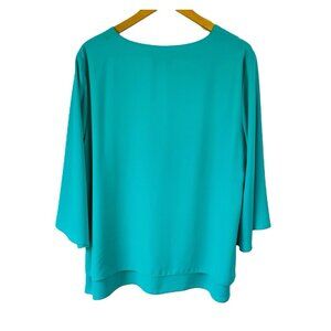 Joseph Ribkoff Chiffon Layered Blouse Aqua Tunic Top Flared 3/4 Sleeve
