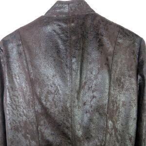 Joseph Ribkoff Jacket Blazer Womens Size 4 Faux Suede Belted Chocolate Brown Shimmer Texture. Stunning Open Jacket with Belt Closure