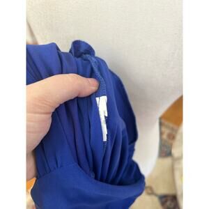 Excellent condition. Bright cobalt blue, slight cap sleeve, v-neck. Draped front.