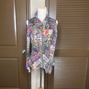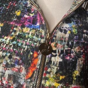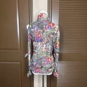 Worn 2-5 times excellent condition. Size 8. Stylish jacket with a vibrant multicolor design. Features a front zipper for easy wear.