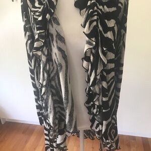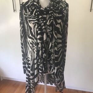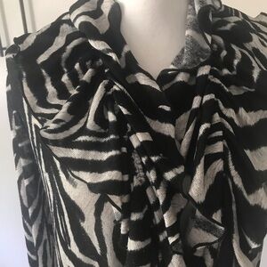 Joseph Ribkoff Couture Zebra cardigan Tunic Sweater Ruffle Collar high low sz 8