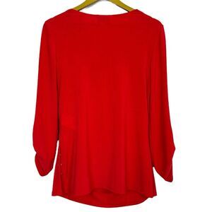 Joseph Ribkoff Cowl Neck Tunic Top Size 10 Red Stretch Draped Capsule Modest Y2K