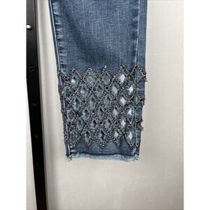 Joseph Ribkoff Diamond Cut-out Jeans Women's 6 Blue Embellished Cropped Stretch
