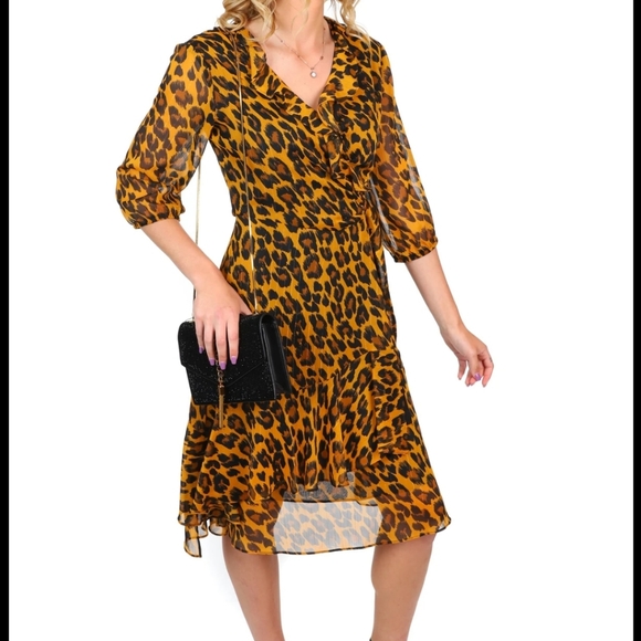 Beautiful Leopard Print 3/4 Sleeves Open Chest Dress