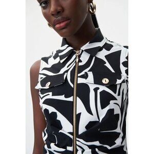 Joseph Ribkoff Dress Sz 22 XXL Black White Abstract Print Sleeveless Zip 232224