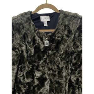 Joseph Ribkoff Faux Fur Teddy Swirl Full Zip Jacket with Rhinestone zipper sz 8