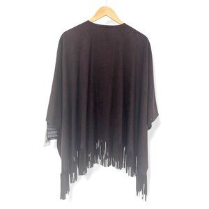 Joseph Ribkoff Faux Suede Fringe Poncho Size S/M Chocolate Western Boho Top NEW