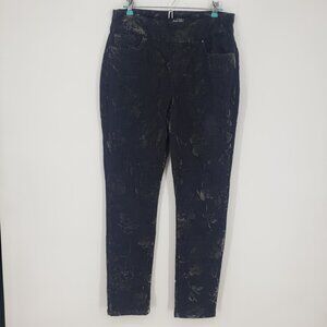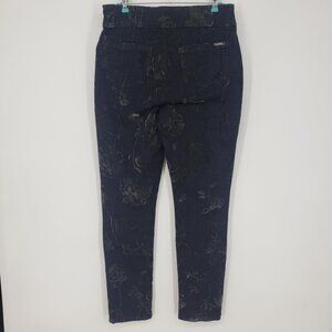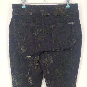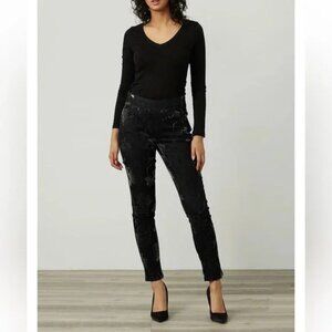 Joseph Ribkoff Floral Flocked Velvet Jeans 10 Slim Fit High Rise Waist Ankle
