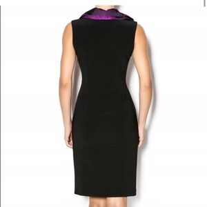 Joseph Ribkoff Floral Sheath Dress Size 8 Black & Purple Party Cocktail Ruched